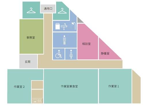 2. 見学  まずは見学されることをおすすめいたします。見学をご希望の方はお問合せの際に見学希望とお伝えください。施設内のご案内や、作業内容、支援体制のご説明をさせていただきます。同伴者の方もお気軽にお越しください。
